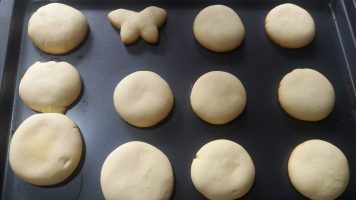 Pré – aquecer o forno durante uns minutinhos. Então, colocar as bolachinhas em forma antiaderente e deixar no forno por 10 a 15 minutos, à temperatura de 180 graus. Ou até dourar levemente a parte de baixo do biscoito, cuidar, pois eles podem queimar com facilidade. Uma vez que a massa é bastante delicada, e o tempo vai variar de forno pra forno e do tamanho e espessura dos biscoitos. Espere esfriar para decorar ou colocar em uma embalagem fechada.